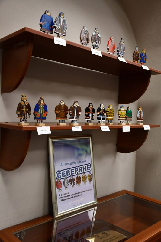 Александр Шалов – мастер деревянной резьбы с филигранной росписью, известный далеко за пределами Ивановской области. Его работы представлены в известных музеях Москвы, Санкт-Петербурга, и других городах России. Для фестиваля он создал серию новых фигурок, изображающих представителей народов Севера с детальной проработкой национальных костюмов.