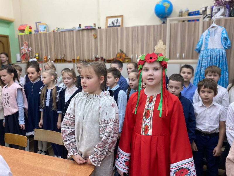 Приятно было видеть, что дети подготовились к мероприятию — одели традиционно русские костюмы, выступили с патриотическими стихотворениями и песнями, встретили гостей с караваем.